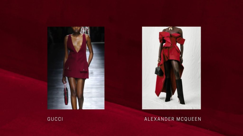 Both cherry red and burgundy red became popular this winter, but fashion experts predict that this trend will only grow in popularity, as seen in the last Gucci Milan Fashion Week, which started with a flood of red outfit silhouettes.